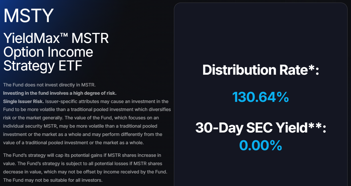 MSTY: MSTR 추종 고 배당주. 작년 거품도 많이 빠졌고 올해 비트코인 고점 재차 갱신이 예상되기도 하고 무엇보다 연 배당이 90~140%사이.
